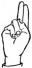 На ћирилици написано АНГЕЛИНА БОЛУНОВИЋ састоји се из 17 слова [?]. Исписано ћириличном једноручном азбуком за глувонеме: